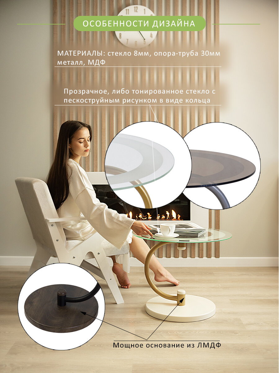 Стеклянная столешница столика придает любому пространству легкость и воздушность. Благодаря компактным размерам, он легко впишется в небольшое пространство, придавая особую изюминку.