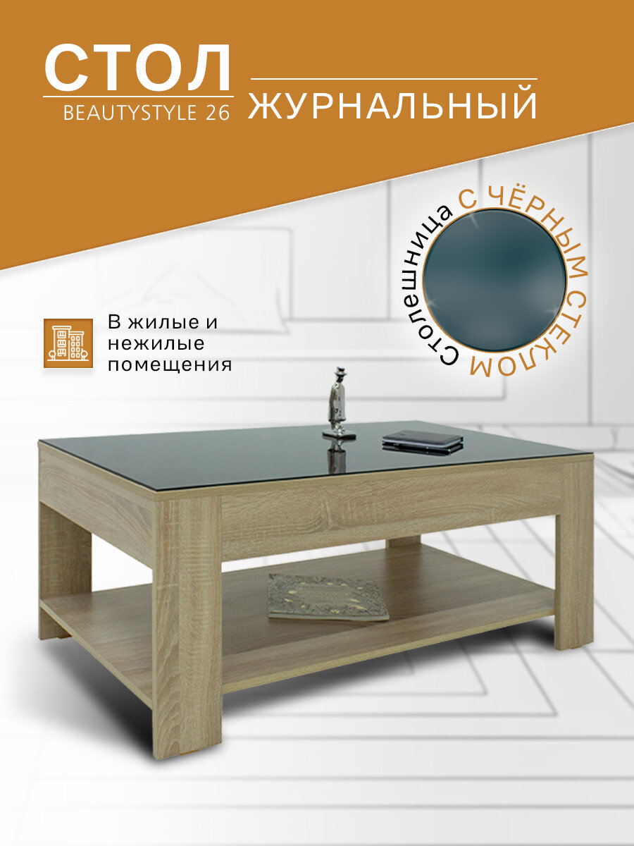 Купить Стол журнальный Мебелик с стеклянной столешницей и полкой BeautyStyle 26 сонома/стекло черное с доставкой по всей России. Стол журнальный Мебелик с стеклянной столешницей и полкой BeautyStyle 26 сонома/стекло черное: сравнение цен, характеристики, фото, актуальное наличие и цены.