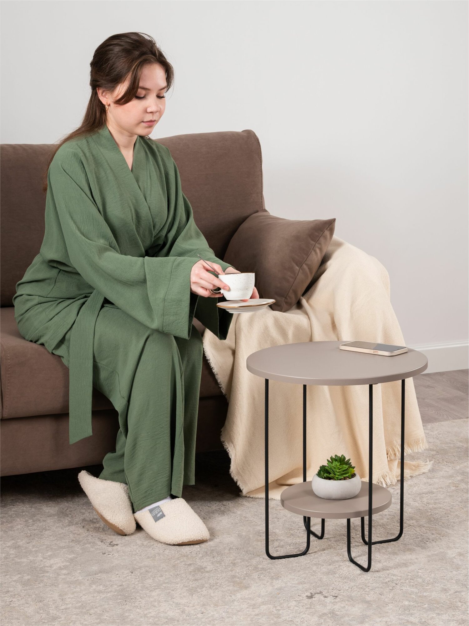 Маленький круглый столик отлично впишется в современный интерьер и станет стильным акцентом для гостиной, спальни или балкона. Такой кофейный стол легко дополнит зону отдыха в стиле лофт, подчеркнет уют и функциональность вашего дома. Этот деревянный стол привлекает своей практичностью. На полке удобно разместить книги, журналы или элементы декора, что позволяет поддерживать порядок и всегда иметь под рукой важные мелочи. Возможность использовать его как прикроватный вариант оценят те, кто любит пить утренний кофе в спальне или хранить гаджеты рядом с кроватью. Стол не занимает много места — его можно поставить у дивана, кресла или даже на балконе для создания уютного уголка. Минималистичный дизайн легко впишется как в офисный интерьер, так и в домашнюю атмосферу.