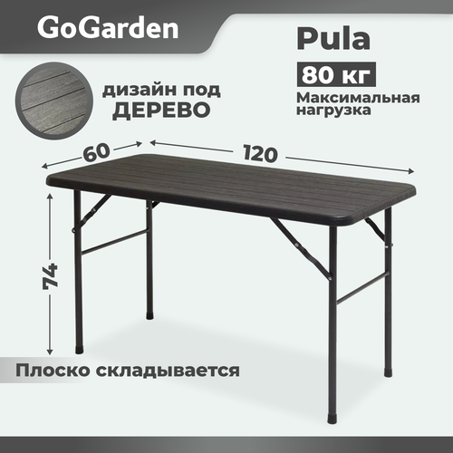 Садовый стол PULA с классическим дизайном столешницы под дерево цвета венге внесет уют в дачную обстановку где бы Вы его не использовали внутри помещения или на террасе. Водостойкий пластик столешницы и стальная рама с антикоррозийным покрытием позволяют оставлять стол на открытом воздухе в течение всего сезона. Прекрасно выполнена внутренняя поверхность стола. Пластиковая защита ножек исключает царапины при использовании внутри помещения. Стол плоско складывается. Отличная комбинация со стулом GoGarden BARI арт.50377