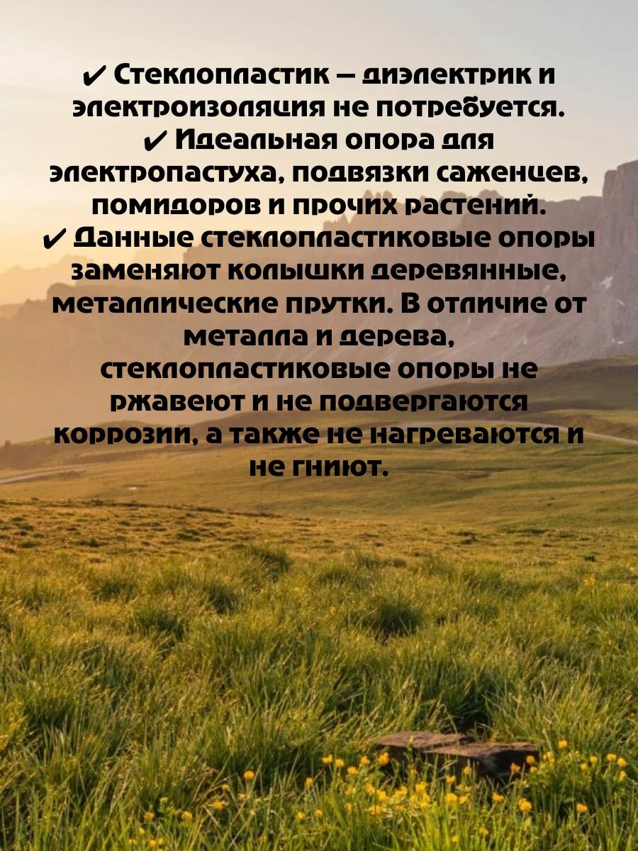 ✔ Данные стеклопластиковые опоры заменяют колышки деревянные, металлические прутки. В отличие от металла и дерева, стеклопластиковые опоры не ржавеют и не подвергаются коррозии, а также не нагреваются и не гниют.