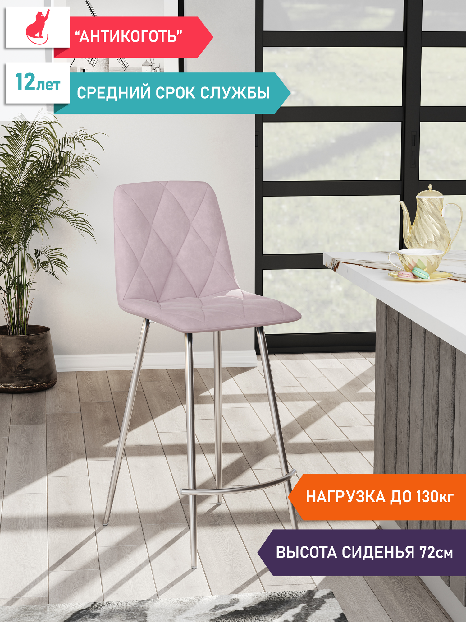 СтолБери Барный стул Дом Столов Ричи 1шт, велюр искусственный, максимальная нагрузка 100кг: сравнение цен, характеристики, фото, актуальное наличие и цены.