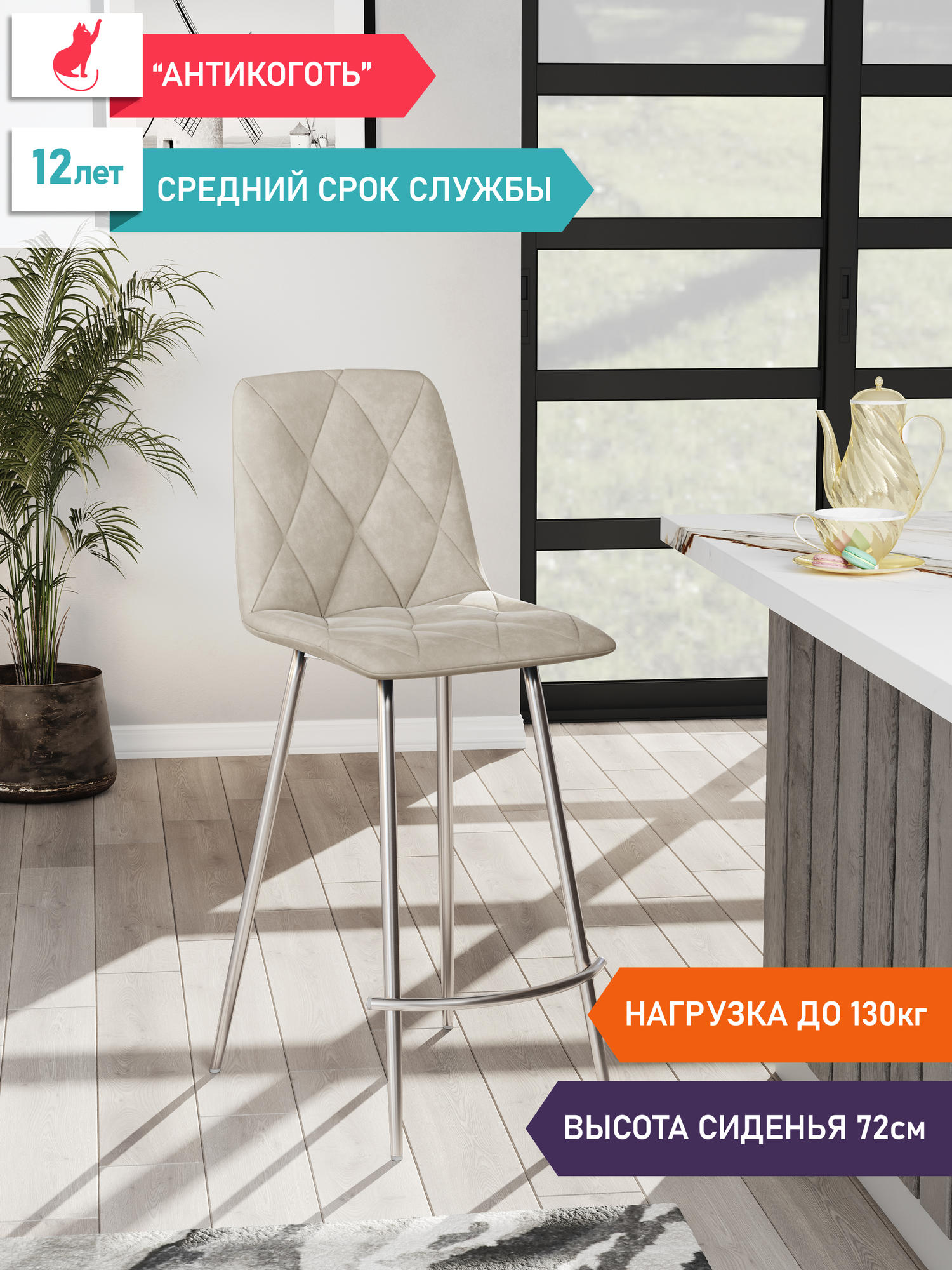 Купить СтолБери Барный стул Дом Столов Ричи 1шт, велюр искусственный, максимальная нагрузка 100кг с доставкой по всей России.