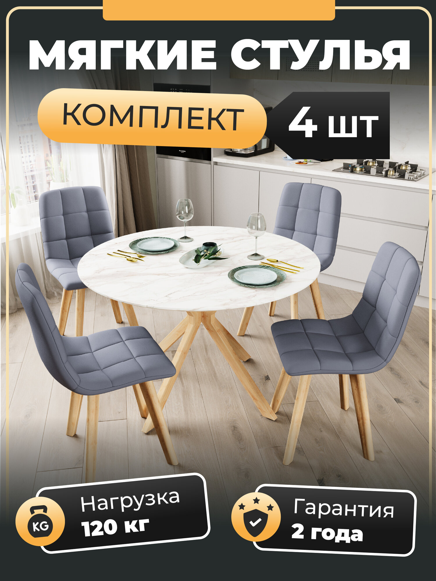СтолБери Комплект (4 шт) мягких стульев на кухню Чили, бархатный велюр, деревянные ножки: сравнение цен, характеристики, фото, актуальное наличие и цены.