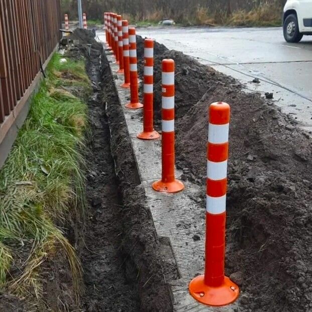 Гибкие столбики хорошо зарекомендовали себя в качестве ограждений для транспортных средств. Идеально подходят для разделения транспортных потоков или использования на парковке. Изготавливаются из эластичного полиуретана или резины, что дает изделию отличную гибкость, упругость. Гибкие столбики имеют яркую окраску, так же они имеют полосы из светоотражающей пленки, что придает им отличную видимость для водителей как в светлое, так и в темное время суток.