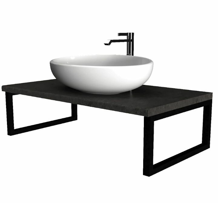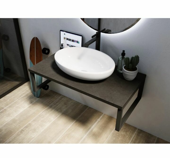 Столешница под раковину в ванную 1Marka GRUNGE LOFT 60 см цвет Бетон темно-серый, с металлическими кронштейнами, подвесная Ц0000001585)