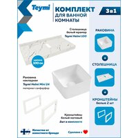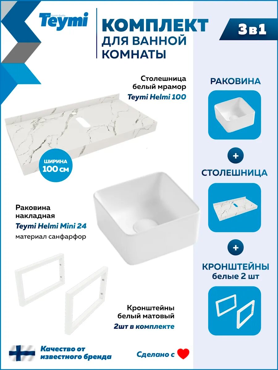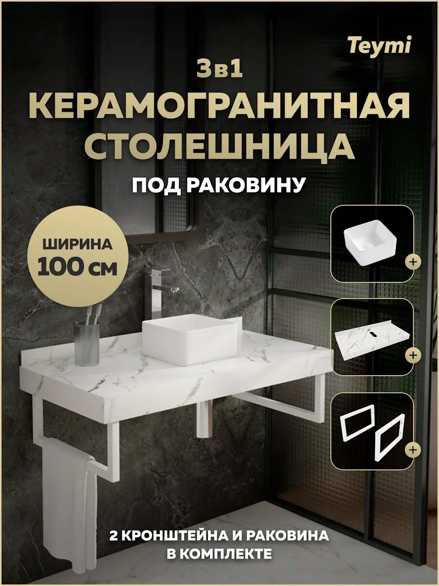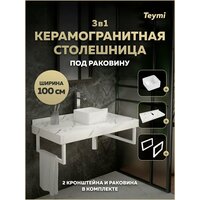 Купить Столешница керамогранитная 100 см белый мрамор с раковиной Teymi Helmi Mini 24 кронштейны 2 шт. белые в комплекте F14048 с доставкой по всей России.