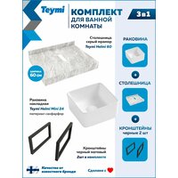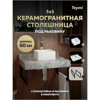 Купить Столешница керамогранитная 60 см серый мрамор с раковиной Teymi Helmi Mini 24 кронштейны 2 шт. черные в комплекте F14198 с доставкой по всей России.