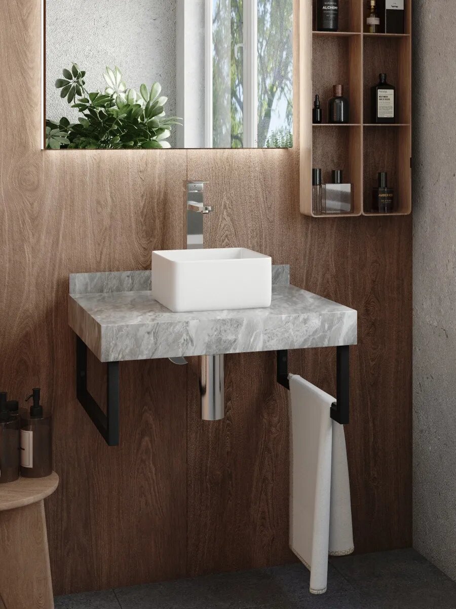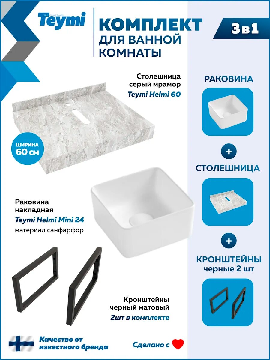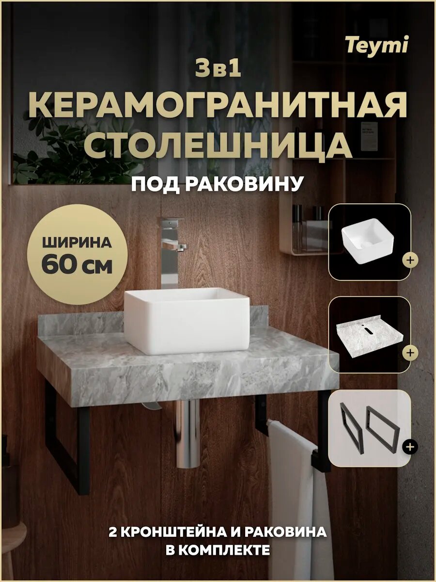 Столешница керамогранитная 60 см серый мрамор с раковиной Teymi Helmi Mini 24 кронштейны 2 шт. черные в комплекте F14198: сравнение цен, характеристики, фото, актуальное наличие и цены.