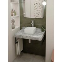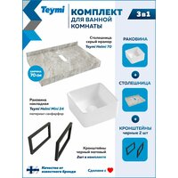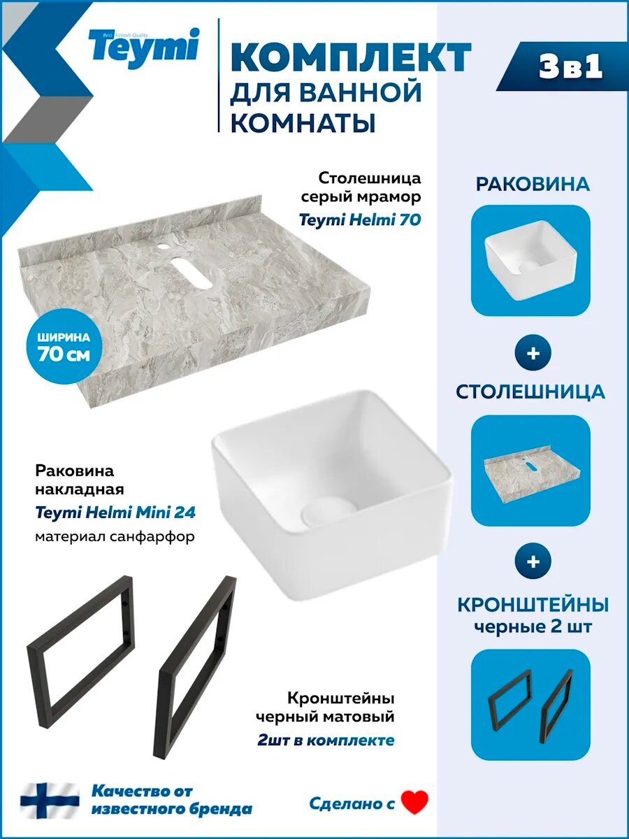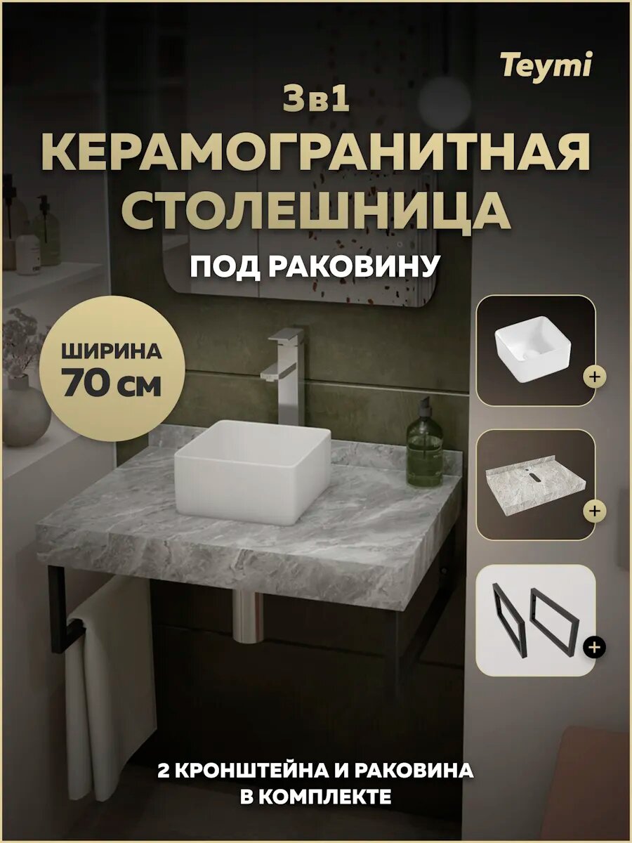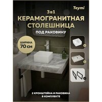 Купить Столешница керамогранитная 70 см серый мрамор с раковиной Teymi Helmi Mini 24 кронштейны 2 шт. черные в комплекте F14223 с доставкой по всей России.