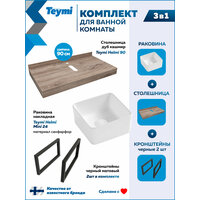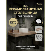 Купить Столешница керамогранитная 90 см дуб кашмир с раковиной Teymi Helmi Mini 24 кронштейны 2 шт. черные в комплекте F15651 с доставкой по всей России.