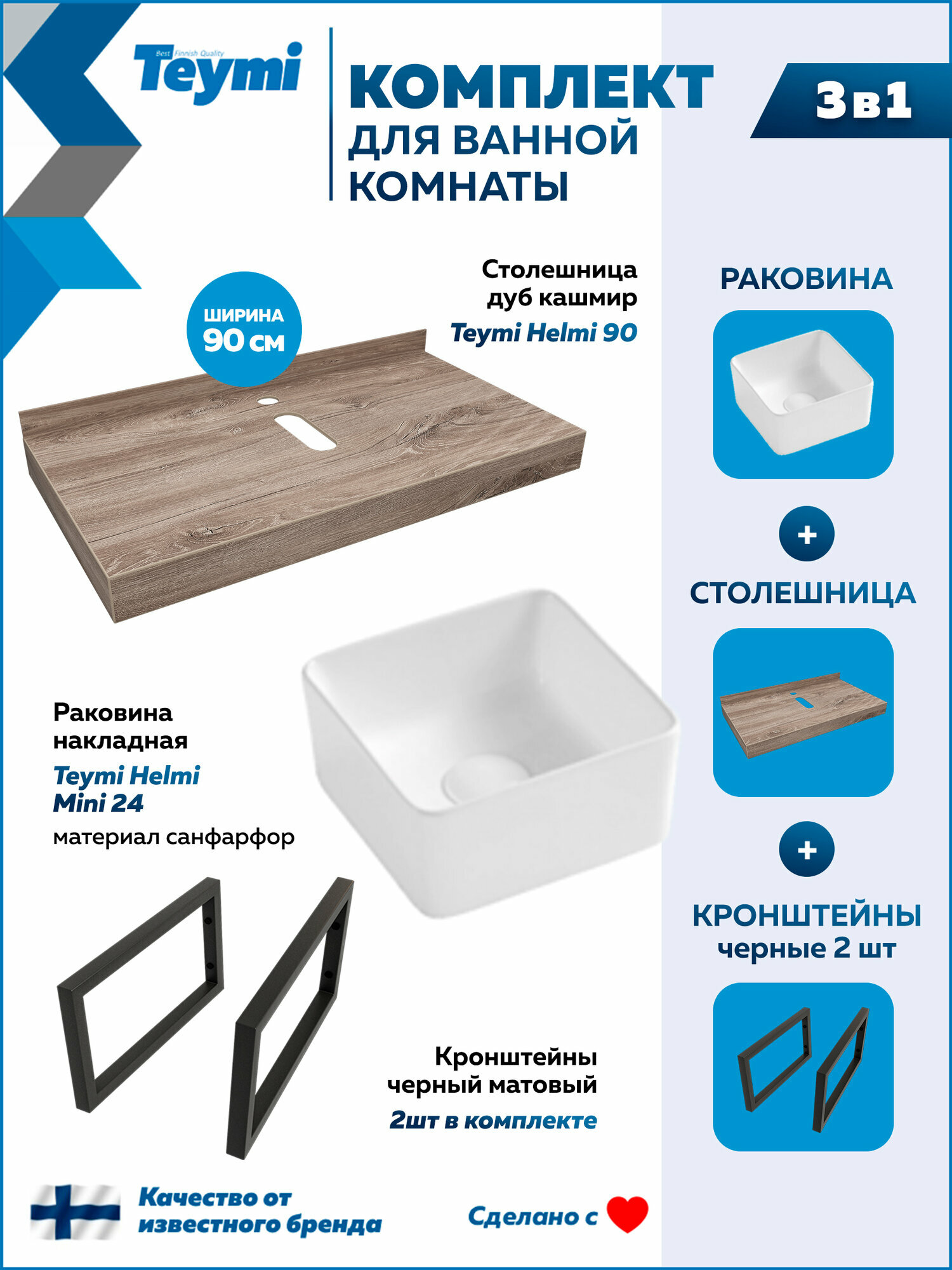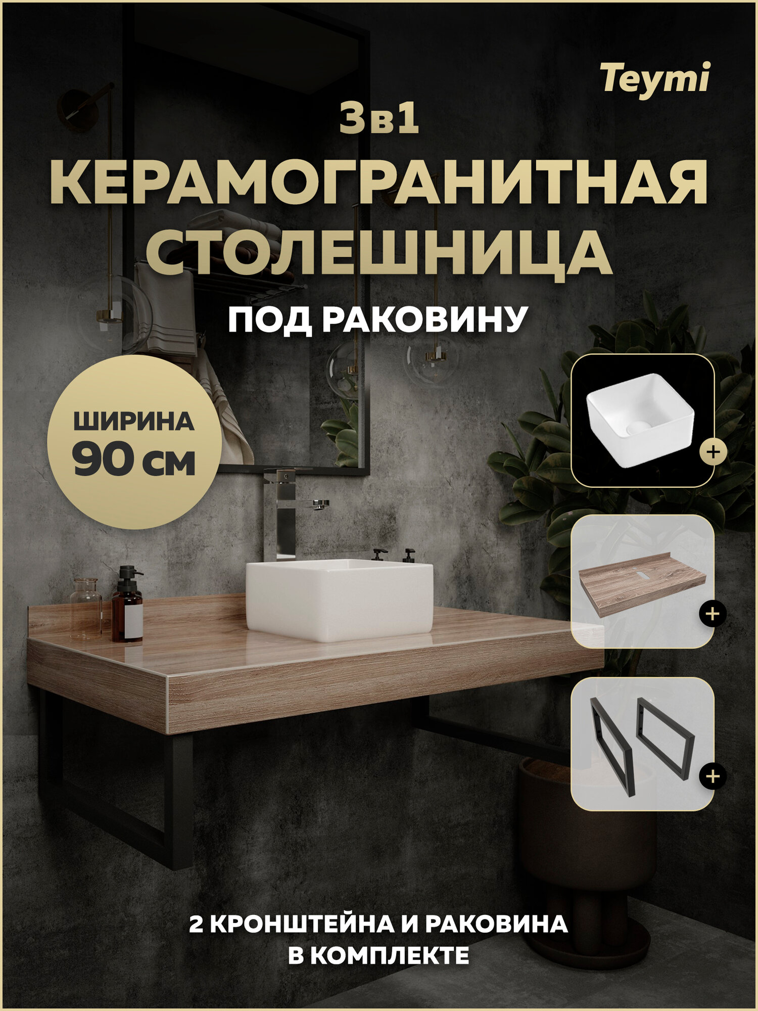 Столешница керамогранитная 90 см дуб кашмир с раковиной Teymi Helmi Mini 24 кронштейны 2 шт. черные в комплекте F15651: сравнение цен, характеристики, фото, актуальное наличие и цены.