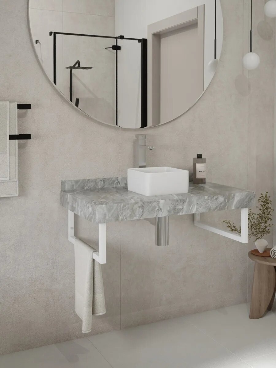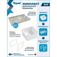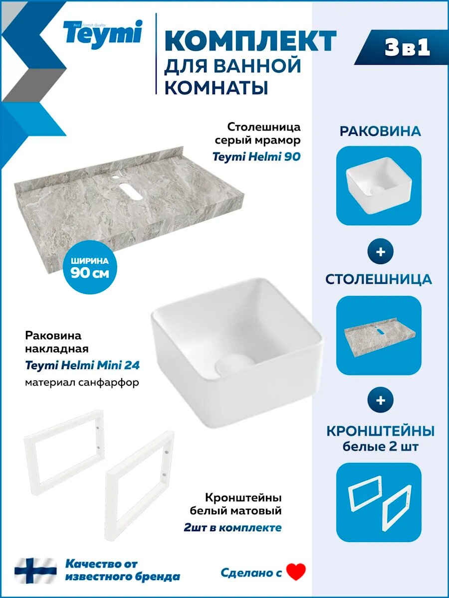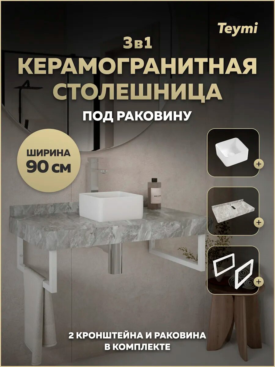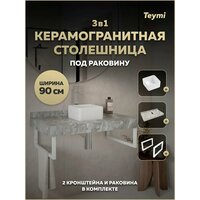 Купить Столешница керамогранитная 90 см серый мрамор с раковиной Teymi Helmi Mini 24 кронштейны 2 шт. белые в комплекте F14148 с доставкой по всей России.