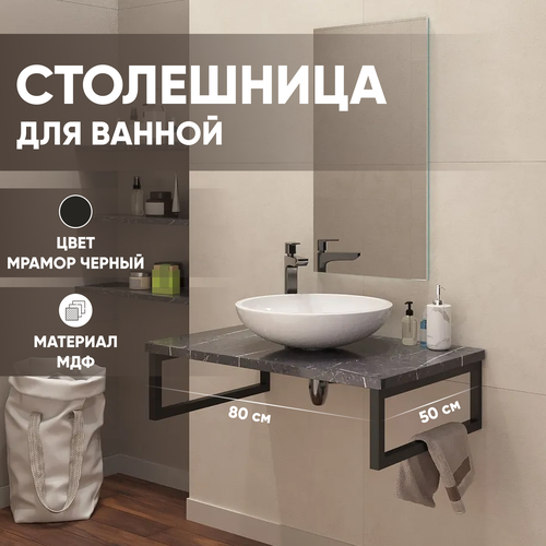 Столешница Leman Мрамор черный 800х500х28 мм влагостойкая из МДФ для ванной под раковину и стиральную машину: сравнение цен, характеристики, фото, актуальное наличие и цены.