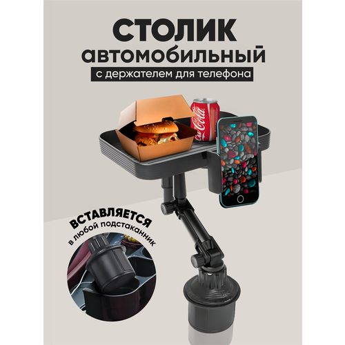 Автомобильный столик для еды с подстаканником и держателем для телефона станет отличным помощником в дороге, больше не понадобится останавливаться чтобы перекусить, всё под рукой. Этот стоик выполнен из прочного ABS- GKFCNBRF и прекрасно держится в любом подстаканнике и его можно повернуть в любую сторону, как к водителю, так и к пассажиру, а так же его прекрасно могут видеть и задние пассажиры, если понадобилось посмотреть кино или мультфимы. Стол регулируется по высоте и вылету, отлично держит гаджеты шириной от 60 до 80 мм. Этот аксессуар имеет ширину 140 см и длину 195 мм.