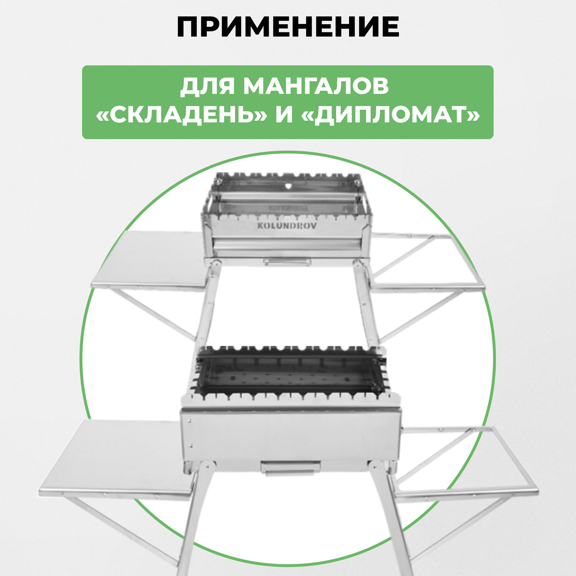 Столик боковой 2 шт для мангала Складень и Дипломат KOLUNDROV из нержавейки, полка для гриля и барбекю, подставка для шампуров, казана, сковороды и кастрюли