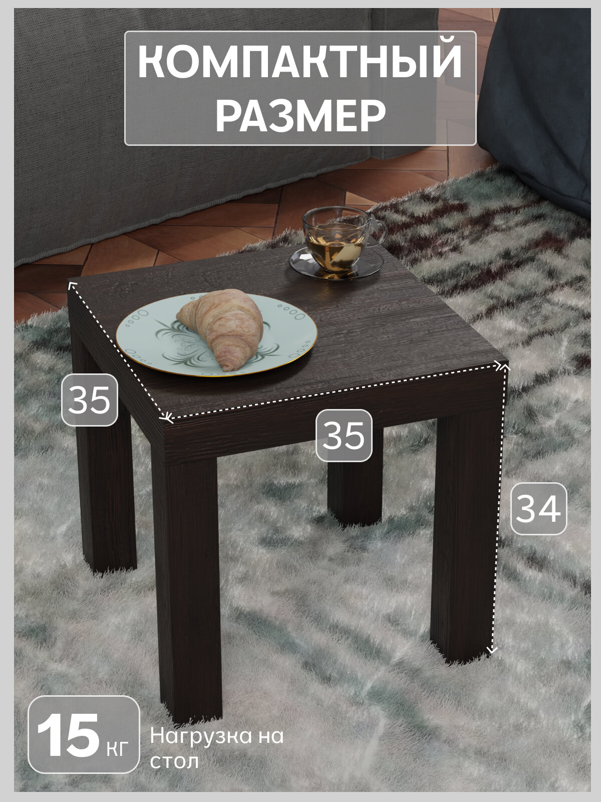 Журнальный столик от бренда Диван24 - идеальное дополнение для вашего интерьера. Элегантный и компактный, он подойдет для гостиной, спальни, ванны или даже балкона. Стильный дизайн в трех цветах: белый, венге и ясень шимо светлый, придаст вашему дому уют и шарм. Прочные материалы и изысканные детали делают этот столик не только функциональным, но и стильным акцентом. Позвольте себе комфорт и элегантность с этим журнальным столиком от Диван24! Этот столик идеальным дополнением для вашего интерьера. С его помощью вы сможете создать уютную атмосферу в любом помещении вашего дома. Благодаря своему стильному дизайну и компактным размерам, он может служить как приставной столик к дивану, добавляя комфорт и удобство в вашу гостиную. Стол интерьерный выполнен из качественных материалов, что обеспечивает его долговечность и прочность. Он идеально подойдет для размещения различных предметов, таких как книги, журналы, чашки с кофе или чаем, а также другие мелочи, которые вы хотите держать под рукой. Если вы ищете деревянный журнальный столик, который будет сочетаться с любым стилем интерьера, то этот стол от Диван24 - отличный выбор. Он выполнен в минималистичном стиле, который подчеркнет ваш безупречный вкус и добавит изысканности в ваш дом. Кроме того, этот стол может использоваться как стол-тумба на кухне. Он идеально подойдет для размещения различных кухонных принадлежностей, таких как посуда, приправы или даже небольшие кухонные приборы. В общем и целом, этот столик от Диван24 - это универсальный и функциональный элемент мебели, который станет незаменимым помощником в вашем доме. Он не только украсит ваш интерьер, но и сделает его более удобным и комфортным. Размер (ширина х глубина х высота): 35х35х34.