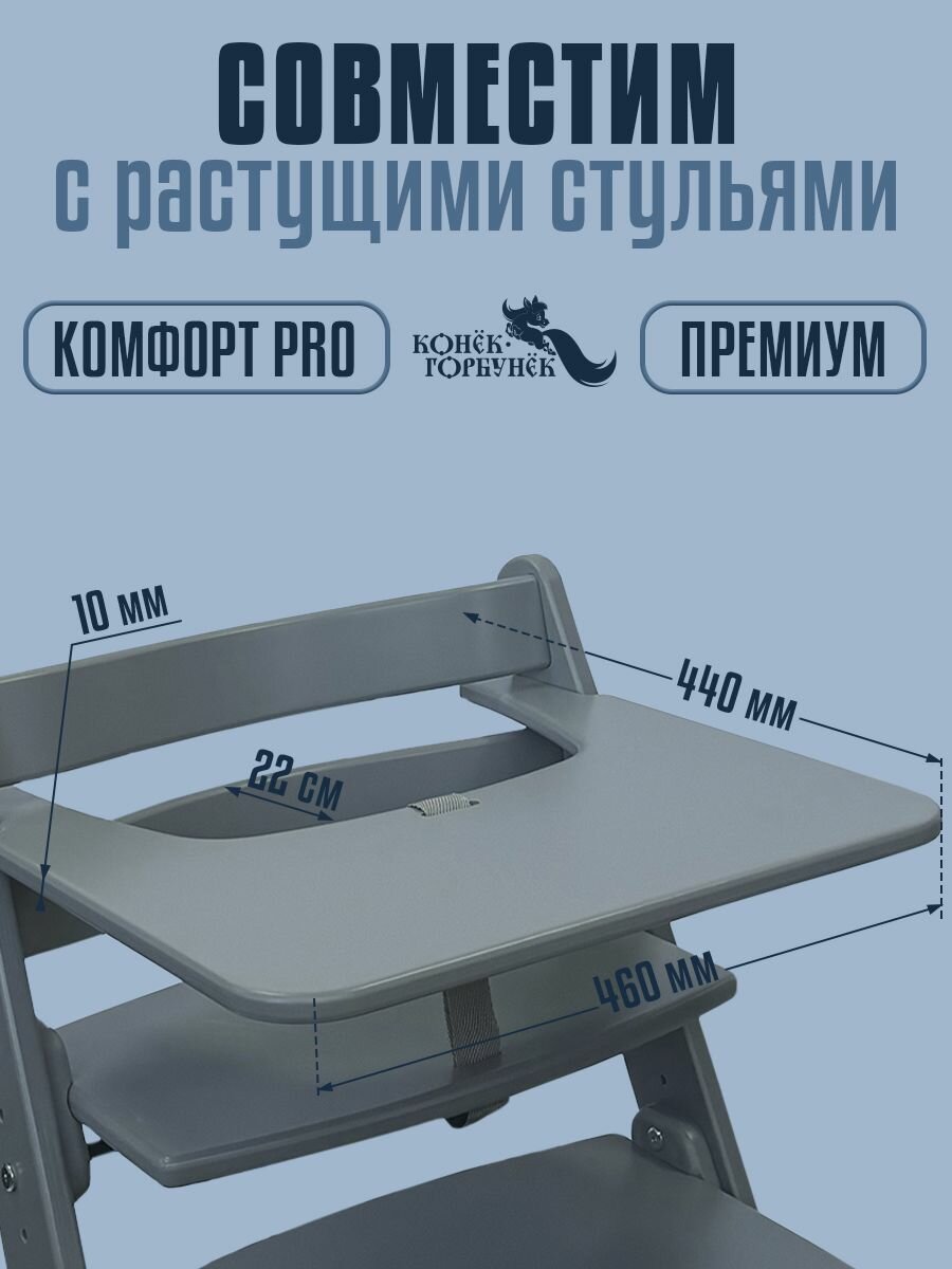 Купить Столик для кормления для растущего стула Конек Комфорт, Премиум Серый с доставкой по всей России. Столик для кормления для растущего стула Конек Комфорт, Премиум Серый: сравнение цен, характеристики, фото, актуальное наличие и цены.