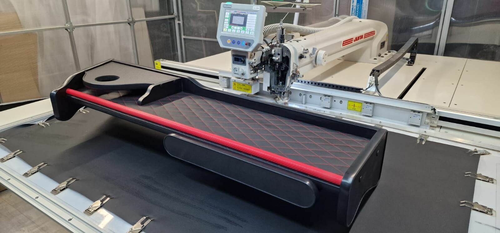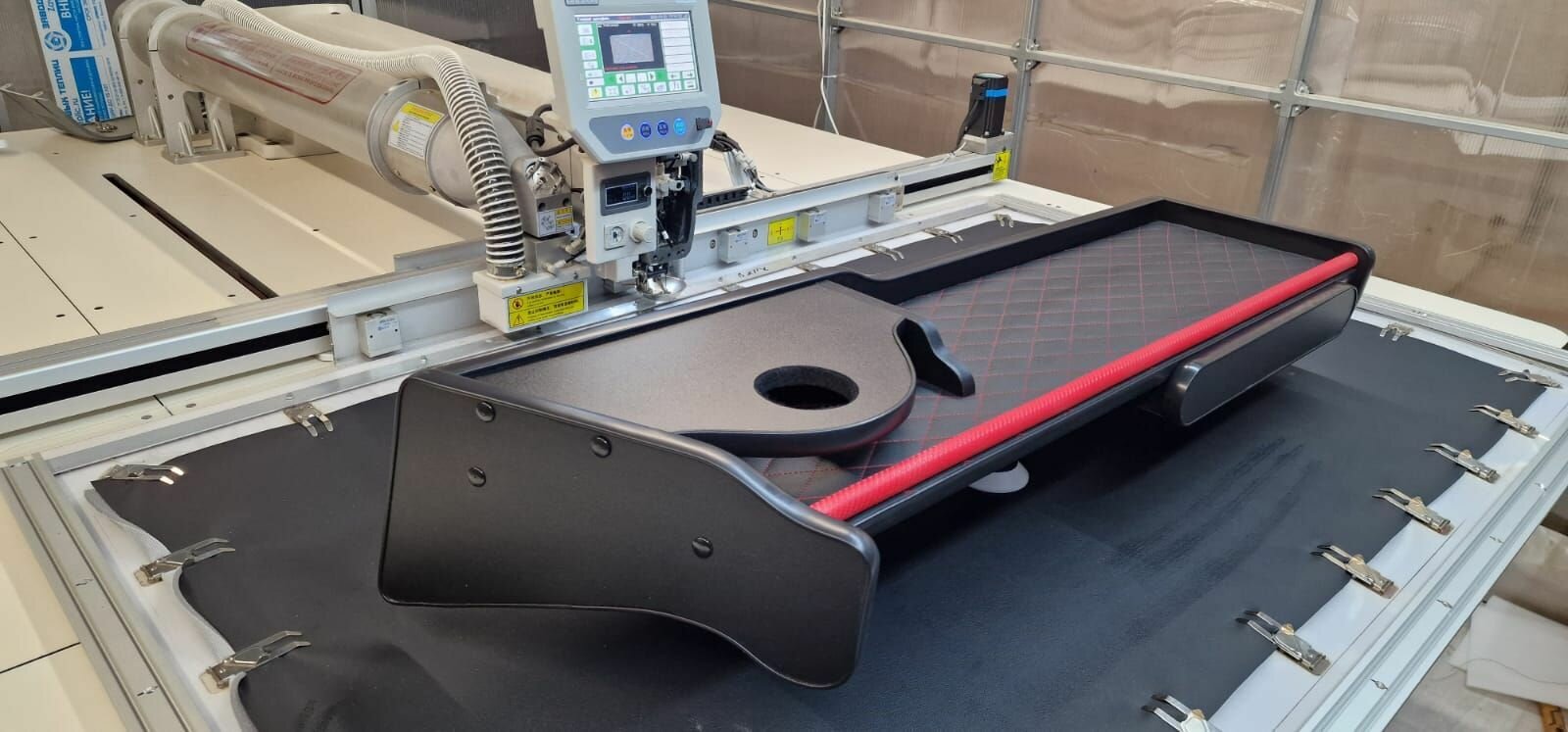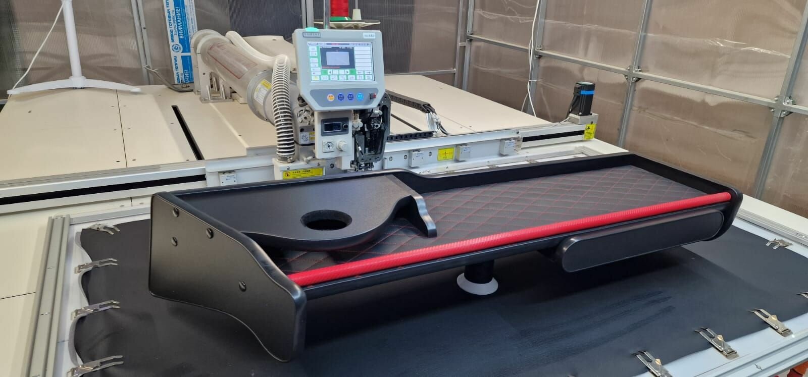Стол парта на всю панель для а/м Газель Бизнес с панелью Next (черный) перф. кожа, с откидной крышкой