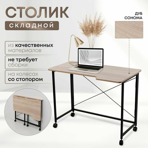 Столик для ноутбука «Дуб Сонома» 100х58х75 см, складной, на колёсиках, ЛДСП, металл: сравнение цен, характеристики, фото, актуальное наличие и цены.