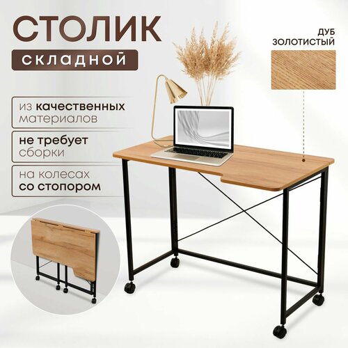 Столик для ноутбука «Дуб Золотистый» 100х58х75 см, складной, на колёсиках, ЛДСП, металл: сравнение цен, характеристики, фото, актуальное наличие и цены.