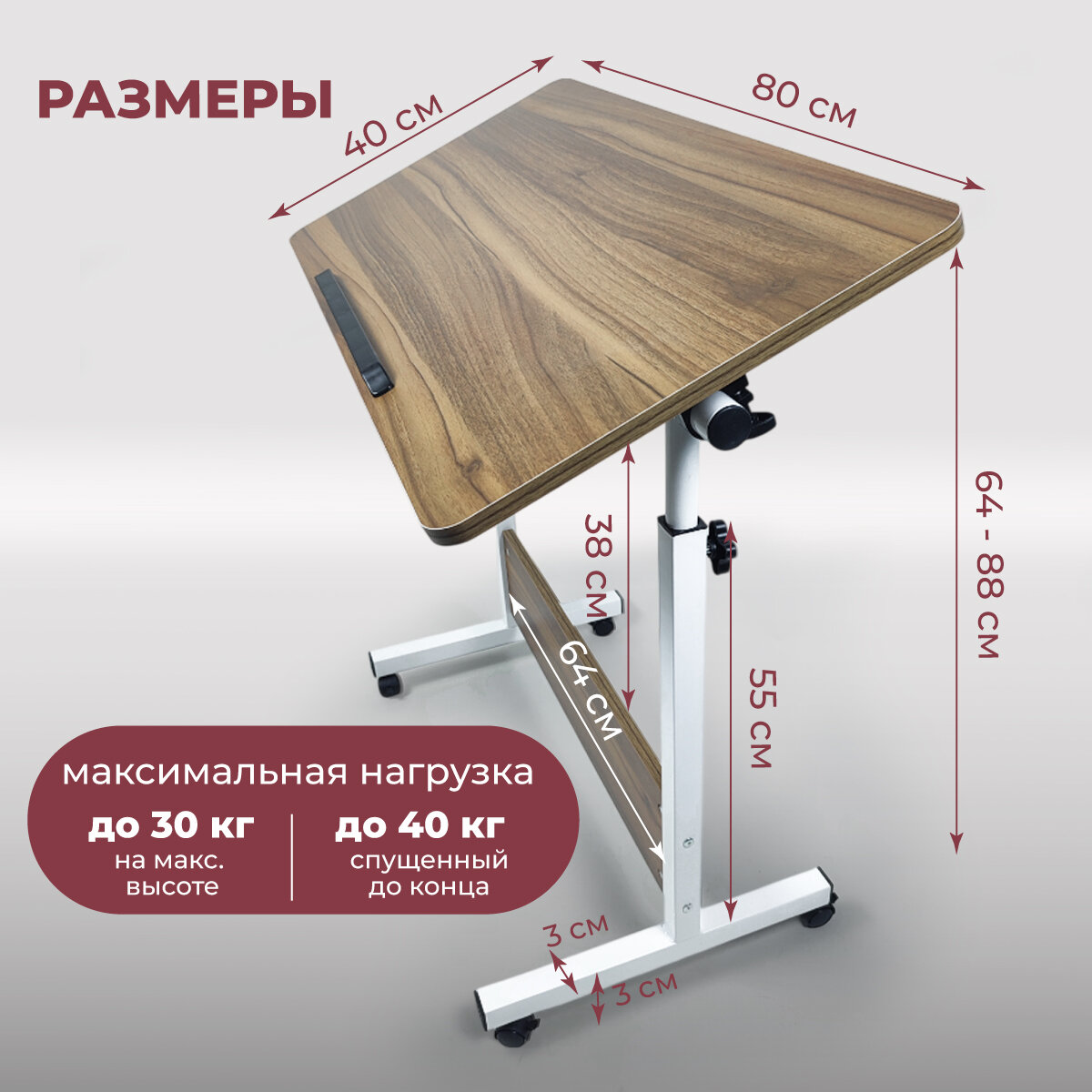 Складной столик для ноутбука значительно повысит уровень комфорта работы и предотвратит перегрев компьютера или планшета. Модель предназначена для работы с ноутбуками и планшетами с диагональю экрана от 7 до 17 дюймов. В нижней и части столешницы установлен ограничитель, предотвращающий скатывания ноутбука с рабочей поверхности при значительном угле её наклона. Подставку для компьютера удобно устанавливать у дивана, кресла или кровати. Высота регулируется поднятием или опусканием ножек. Нижнее положение позволит использовать его как столик в кровать для завтрака. Так же его можно поставить в гостиной вместо журнального столика. Угол наклона столешницы также можно регулировать, ее можно настроить под свои потребности и применять как стол игровой для пк. Не нужно больше сидеть в месте, которое не соответствует вашему росту или не имеет возможности регулировки высоты. На поверхности детского или взрослого столика можно разместить дополнительные аксессуары и письменные принадлежности. Компьютерный мини столик имеет портативные размеры, небольшой вес и трансформирующуюся конструкцию. Это позволяет использовать его в любом месте: дома, на работе или на отдыхе. За счет колес, стол легко перемещается и используется как прикроватный столик. По окончанию работы конструкция складывается и с лёгкостью помещается в шкаф, не загромождая пространство комнаты. А еще, в свободное от работы время, на нём можно подавать кофе в постель на кровать. Такой маленький раскладной столик идеально впишется в комнату подростка или школьника. Приставной кроватный столик - полезный подарок на день рождения или новоселье сестре, коллеге или учителю. Преподнесите презент маме, любимой подруге или жене, чтобы выразить вашу любовь. Такой аксессуар будет приятно получить в подарок сыну, папе и мужу, парню и брату. Особенно актуально это будет тем, кто работает удалённо и дистанционно.