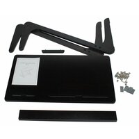 Сборка столика максимально простая и наглядно демонстрируется в инструкции. Вам нужно, всего лишь, прикрутить к столешнице 2 ножки и соединить их проножкой при помощи 8 винтов с фиксаторами. Затем вставьте в специально предусмотренные пазы в столешнице ограничительную планку для ноутбука. Столик готов к использованию.