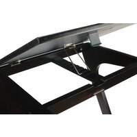 - Регулируемая по наклону столешница — 5 позиций. Часть столешницы (размером 40 см), которая служит подставкой для ноутбука, имеет регулировку по углу наклона к пользователю. Всего доступно пять положений, в которых можно зафиксировать столешницу. Благодаря регулировке наклона вам будет более комфортно читать книгу или работать за ноутбуком в различных положениях.