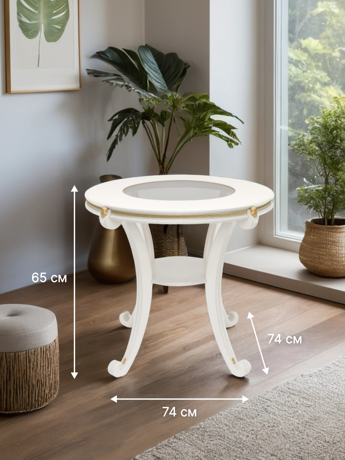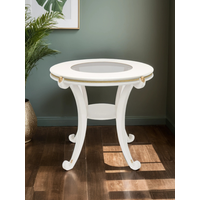 Столик Глория С со стеклом Prime, круглый, с полкой, классический стиль, 70х70х66 см, цвет молочный дуб: сравнение цен, характеристики, фото, актуальное наличие и цены.
