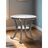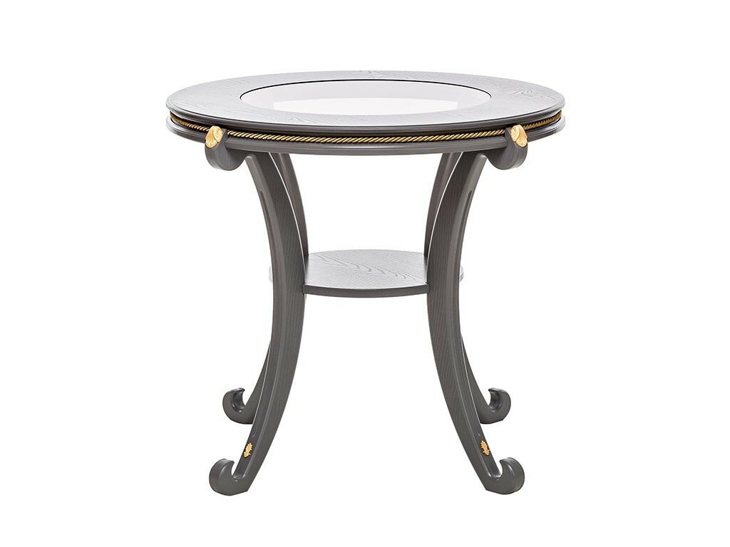 Купить Столик Глория С со стеклом Prime, круглый, с полкой, классический стиль, 70х70х66 см, цвет серый ясень с доставкой по всей России.