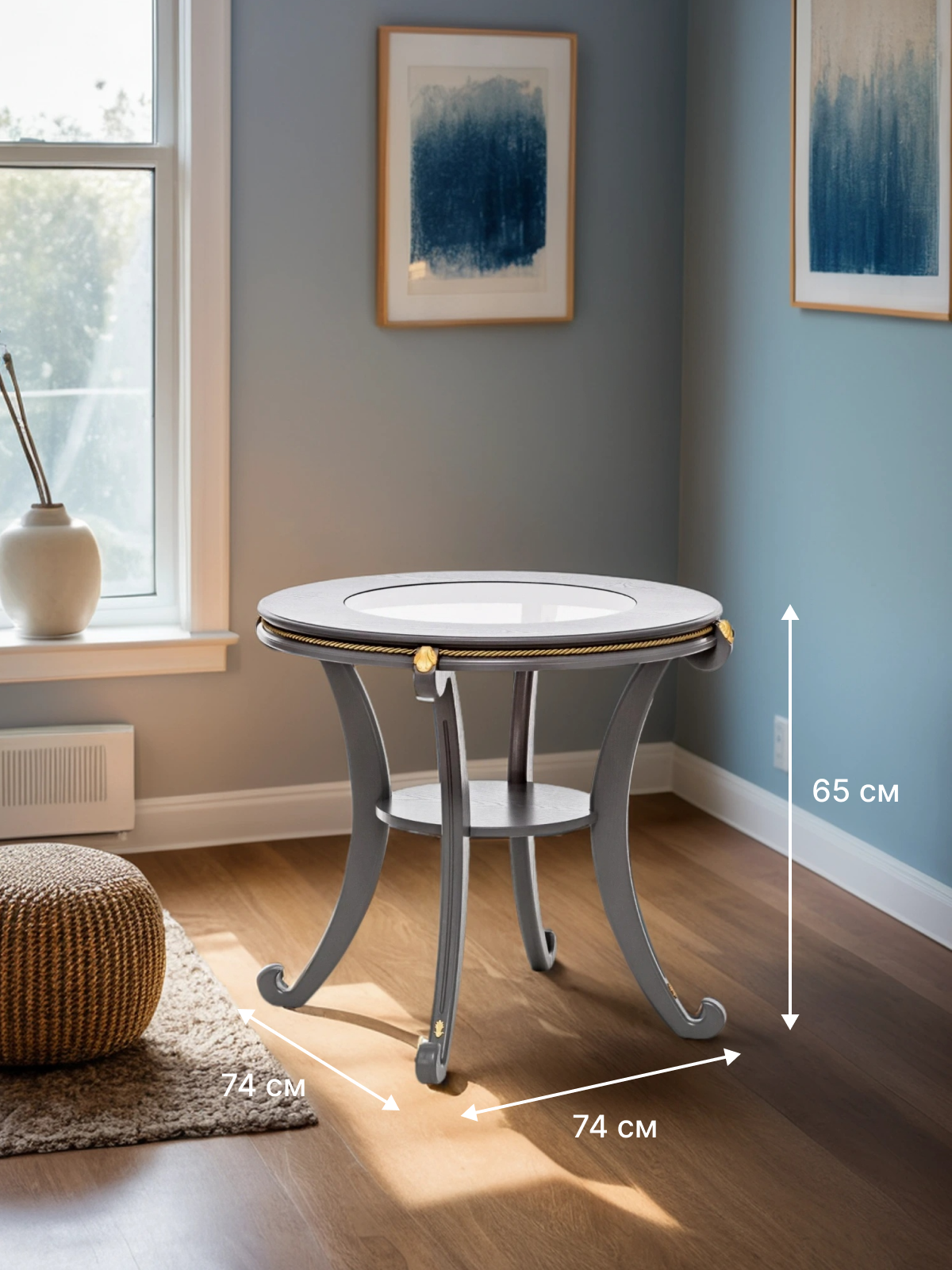 Столик Глория С со стеклом Prime, круглый, с полкой, классический стиль, 70х70х66 см, цвет серый ясень: сравнение цен, характеристики, фото, актуальное наличие и цены.