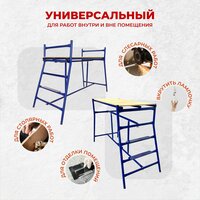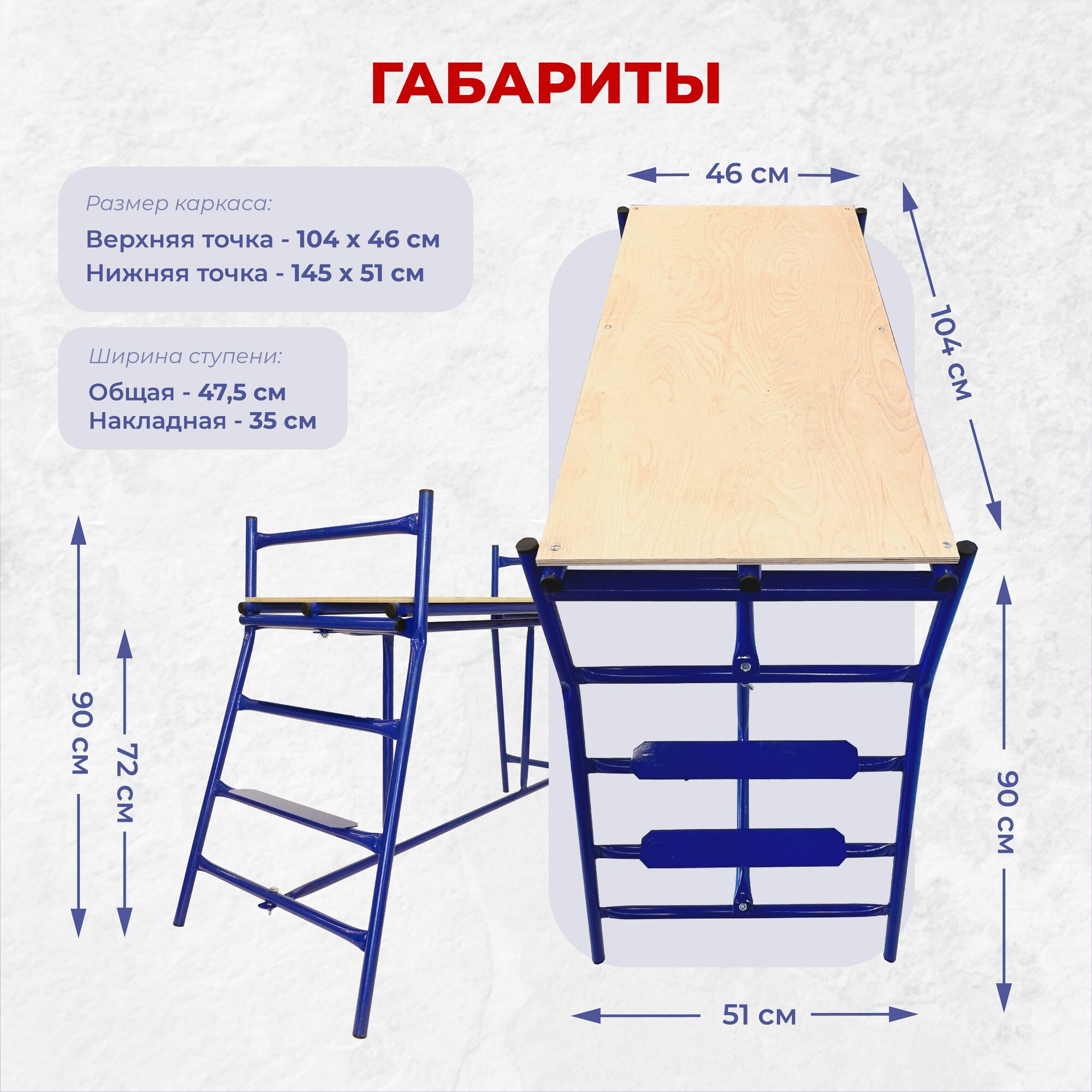 - Простота сборки — две боковые стойки соединяются с основой и фиксируются в рабочем положении съёмным настилом