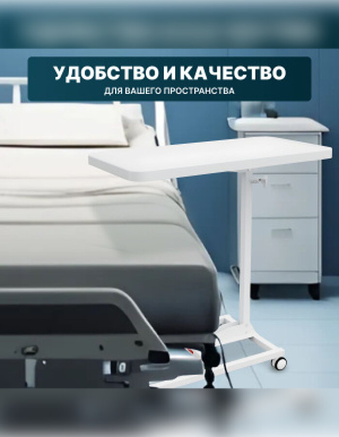 Универсальный, компактный, функциональный медицинский столик со столешницей с регулируемой высотой с Регистрационным Удостоверением и Сертификатом Соответствия станет отличным решением в создании комфорта рабочей среды. Отлично подойдет для комфортного проведения процедуры в медицинских, стоматологических, ветеринарных, санаторно - курортных учреждениях, а также в косметологических и тату салонах, для завтрака, и как подставка для ноутбука. Вам больше не придется испытывать неудобства, связанных с отсутствием удобного столика. Можно легко передвинуть к столу или к креслу. Прикроватный столик очень легкий, а выдерживает до 10 кг. Каркас инструментального стола имеет защитно-декоративное покрытие эпоксидной порошковой краской. Устойчив к регулярной обработке. Столешница из ДСП, с мебельными колесами. Регулировка высоты от 790 до 1250 мм. Направляющие основания и столешницы имеют квадратное сечение, что препятствует вращению столешницы вокруг вертикальной оси. Прост в сборке. Мебель поставляется в разобранном виде. Габариты: 750х400х790-1250 Масса не более - 8 кг. Нагрузка - не более 10 кг. Комплектация: Основание столика - 1 шт, Вертикальная направляющая - 1 шт, Стойка - 1 шт, Столешница - 1 шт, Рукоятка для фиксации держателя в основании столика - 1 шт, Колеса мебельные - 50 мм - 4 шт, Паспорт + инструкция - 1 шт. Гарантийный срок составляет 12 месяцев.