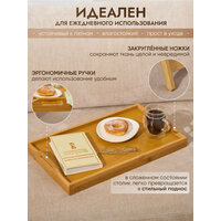 Столик поднос складной на ножках для завтрака в постель и в кровать 50*30*6 см из бамбука с ручками