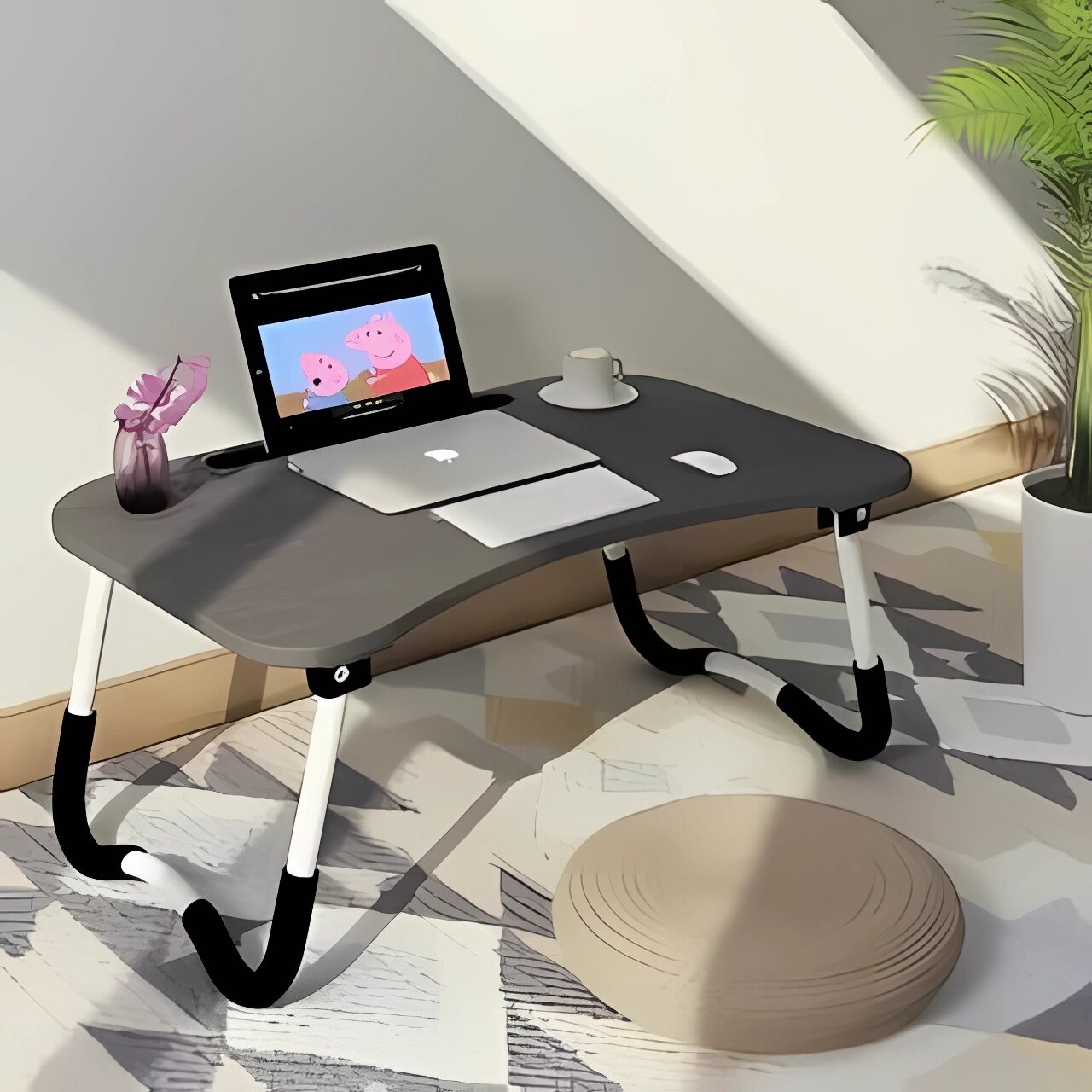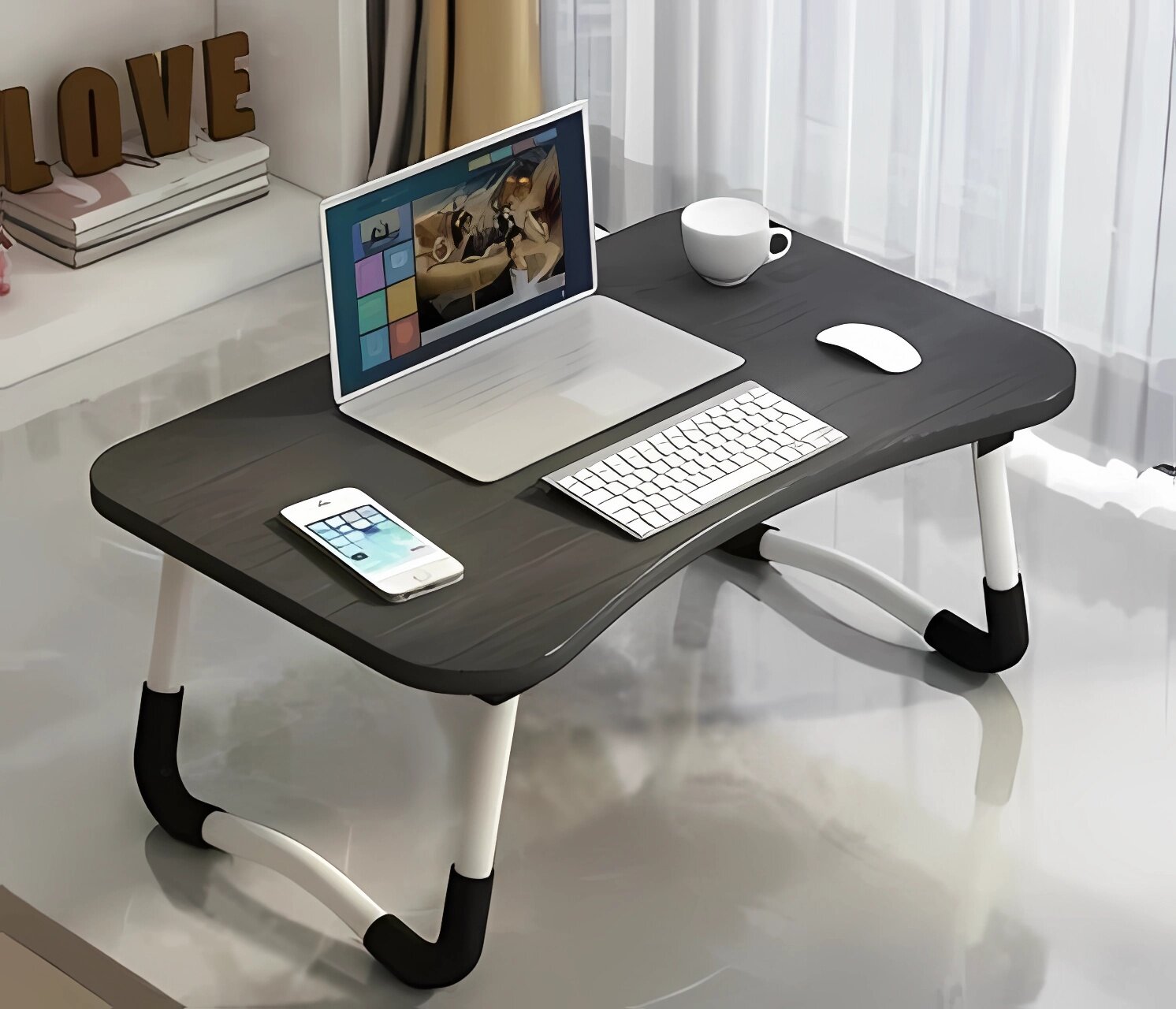 Столик-подставка для завтрака и ноутбука, бежевый, представляет собой практичное и функциональное решение для вашего дома. Он может быть использован в различных ситуациях, таких как работа с ноутбуком, завтрак в постели или пикник.