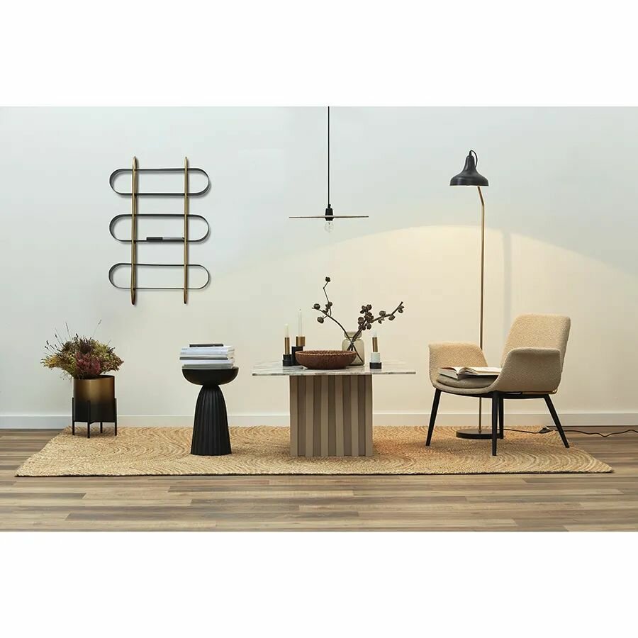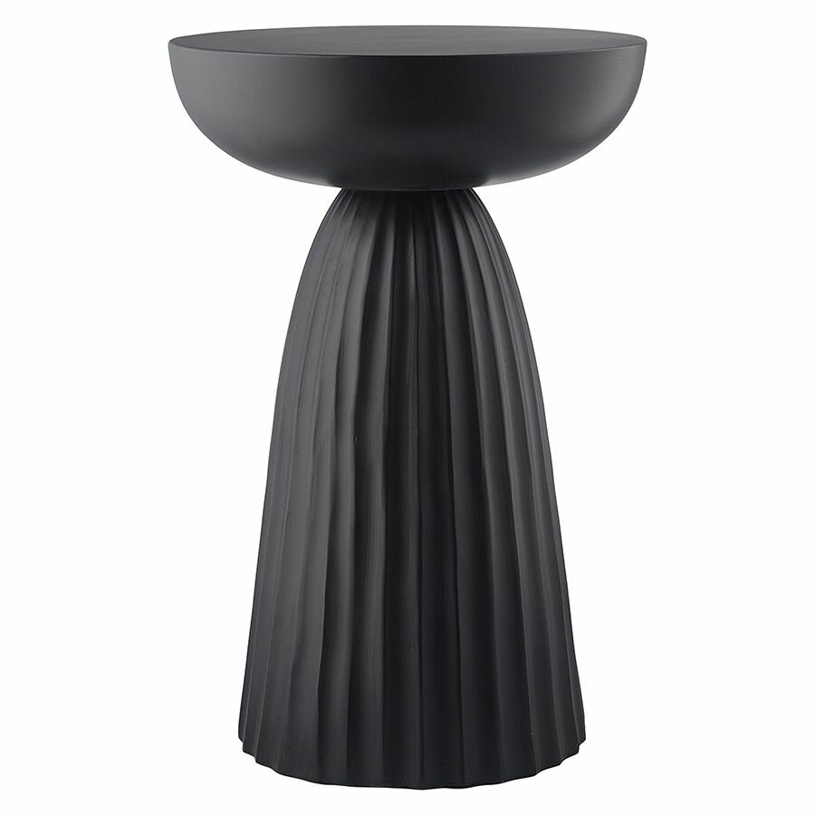 Столик приставной Ujev привлекает внимание необычным дизайном, благодаря чему может стать акцентным элементом в интерьере. Мебель имеет столешницу из алюминия круглой формы диаметром 30,5 см. Это позволяет размещать ее в любом уголке комнаты, не загромождая пространство. Прочное железное основание, напоминающее по форме колонну, делает дизайн интересным, а также обеспечивает конструкции надежность и долговечность.