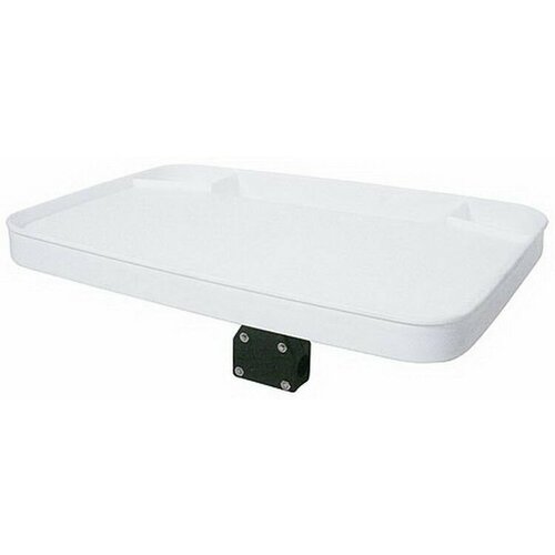 Пластиковый столик для разделки рыбы и работы с наживкой. Крепление на релинг Габаритные размеры: 515×358 мм. Полезная площадь: 500×275 мм. Цвет: белый