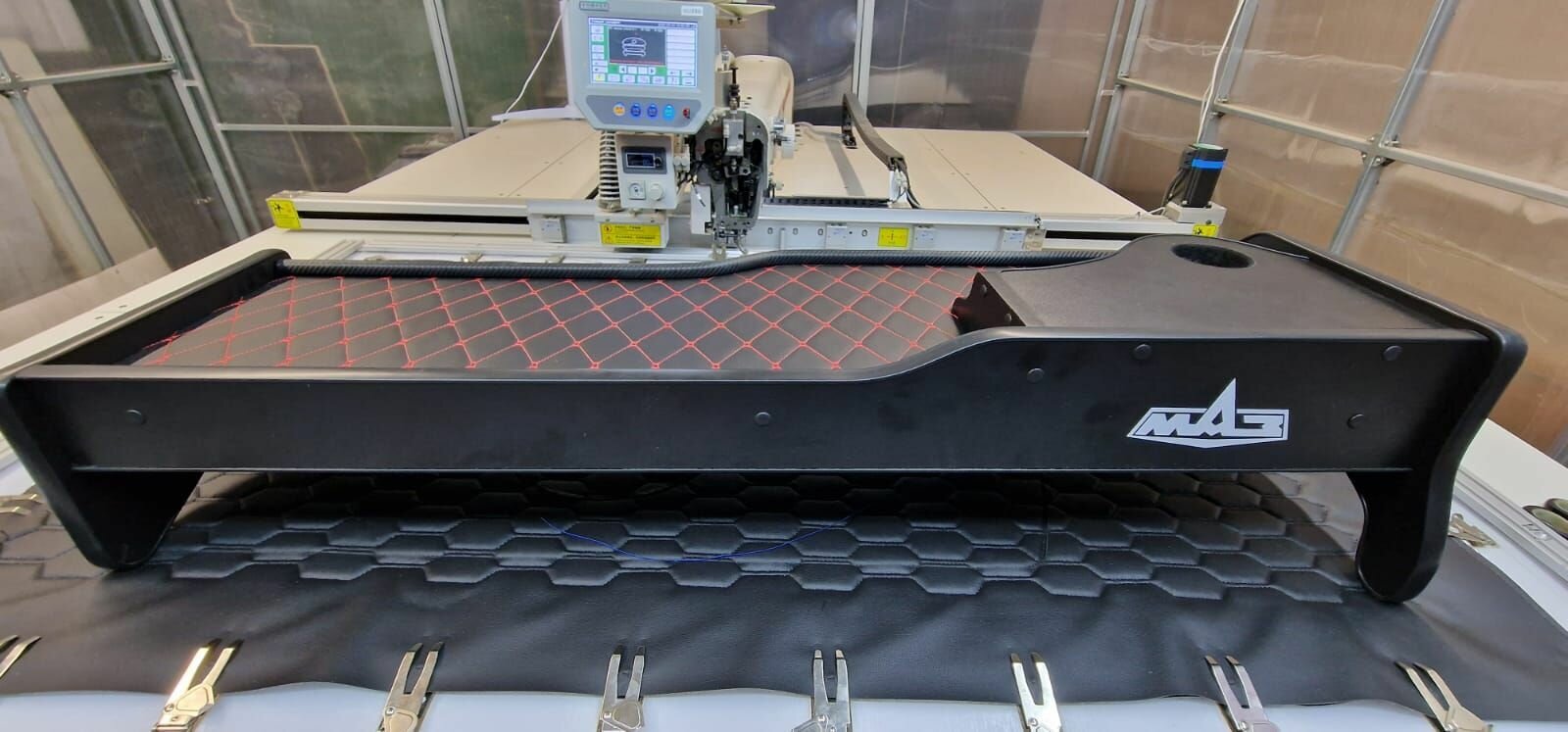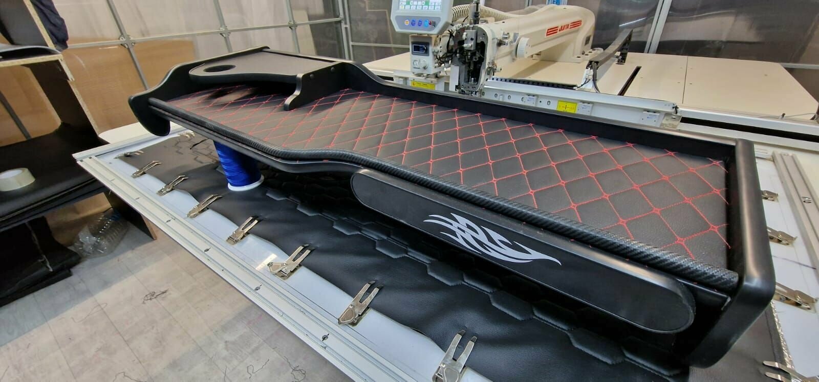 Купить Столик с ящиком для MAZ EURO (Маз Евро) 2 яруса/черная экокожа/красный ромб с доставкой по всей России.