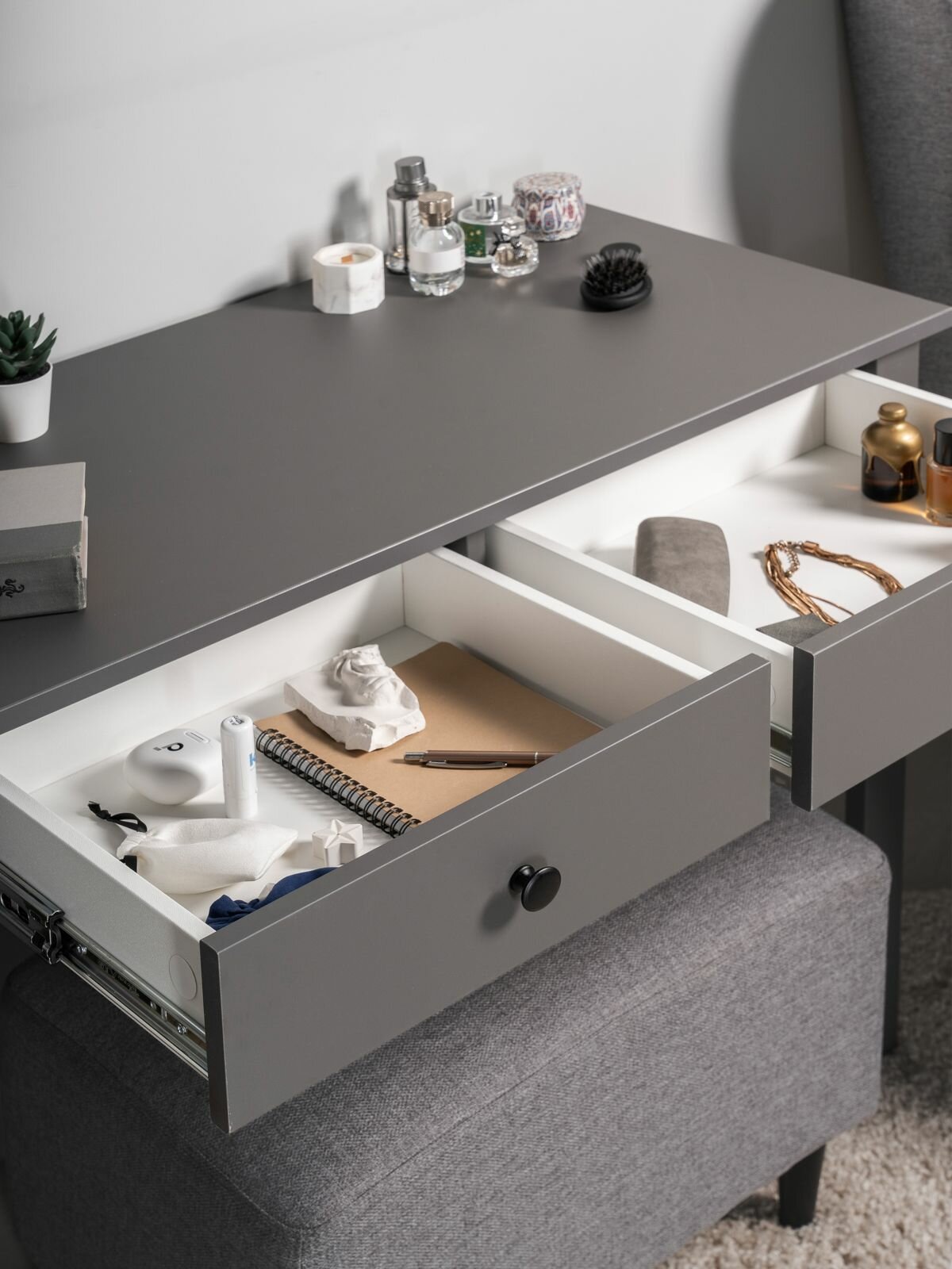 Столик туалетный ГУД лакк Сага, 92 х 45 х 77, серый, МДФ, ЛДСП