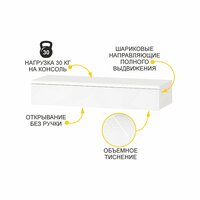 • Шариковые направляющие полного выдвижения обеспечивают плавный, бесшумный ход и длительный срок эксплуатации изделия, а полное выдвижение позволяет быстро и легко найти необходимые вещи и предметы интерьера.