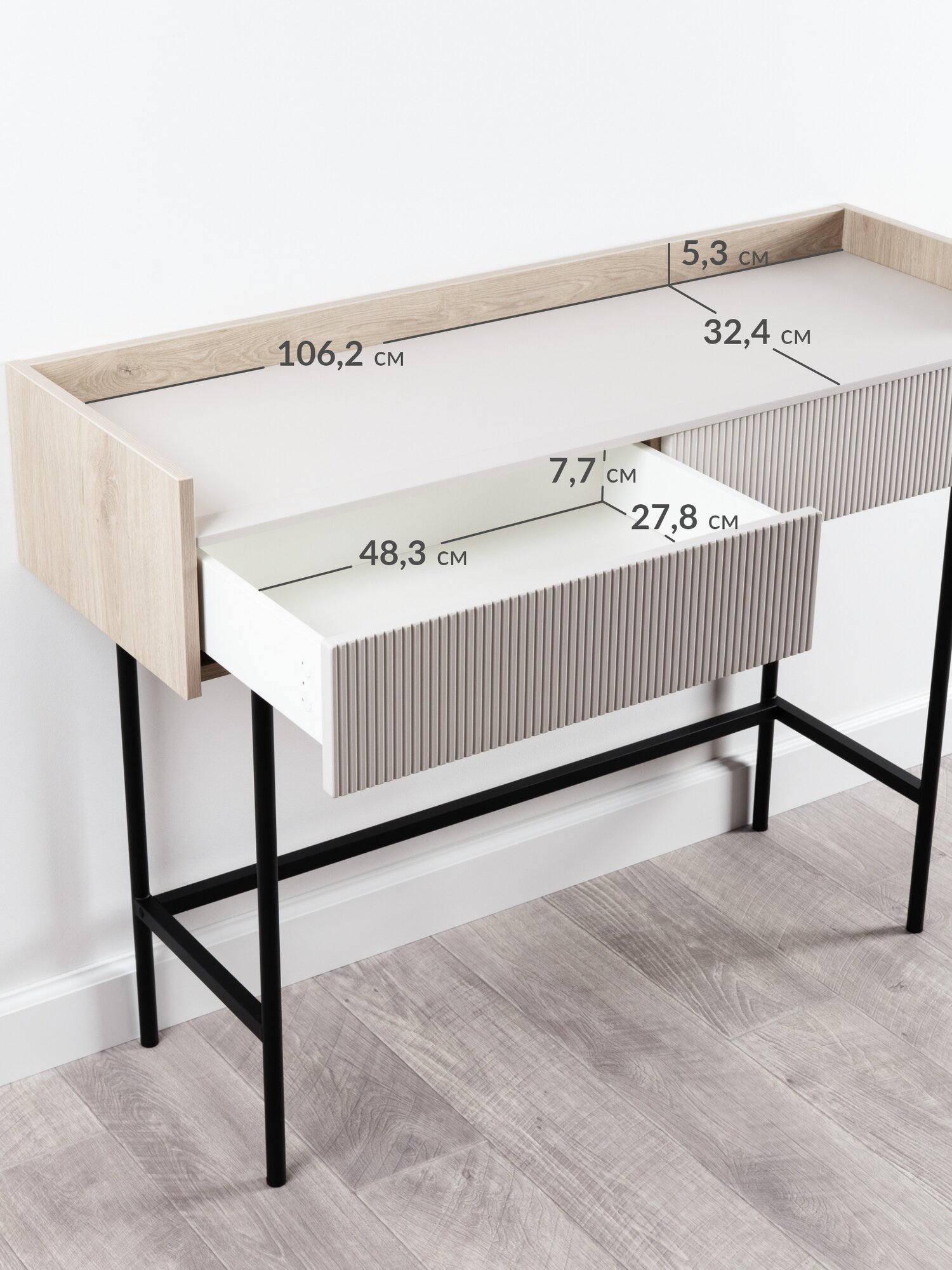 Столик туалетный с ящиками бежевый, 109,4 х 36,5 х 82,1см, Наоми 12.51, Дуб Белый exclusive, Моно керамика: сравнение цен, характеристики, фото, актуальное наличие и цены.