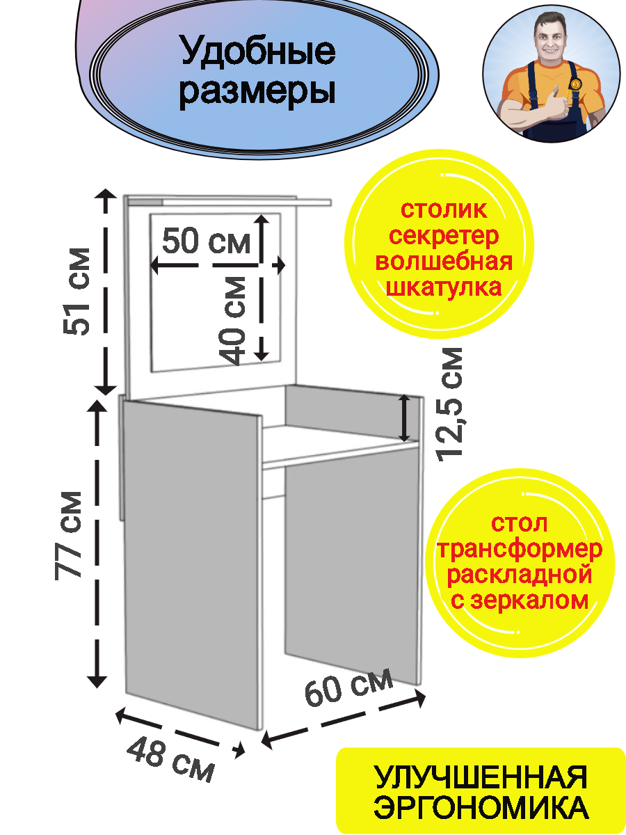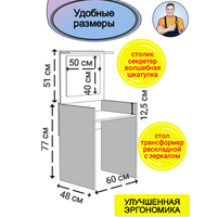 Столик туалетный женский косметический с откидным зеркалом ящиком складной трансформер Веста 60 см, mebel-SamSam: сравнение цен, характеристики, фото, актуальное наличие и цены.