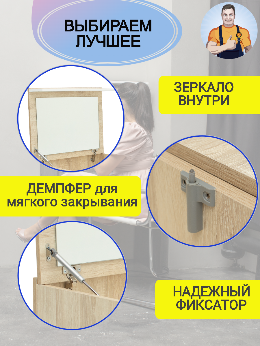 Столик туалетный женский косметический с откидным зеркалом ящиком складной трансформер Веста 60 см, mebel-SamSam: сравнение цен, характеристики, фото, актуальное наличие и цены.