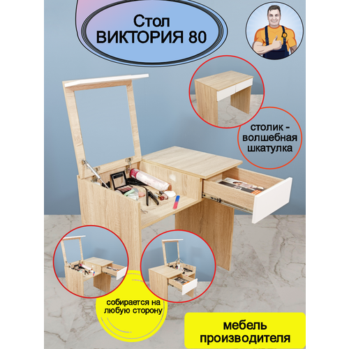 Столик универсальный трансформер письменный туалетный косметический с ящиком и зеркалом складной Виктория 80, 80*77*51 (ШхВхГ), mebel-SamSam: сравнение цен, характеристики, фото, актуальное наличие и цены.