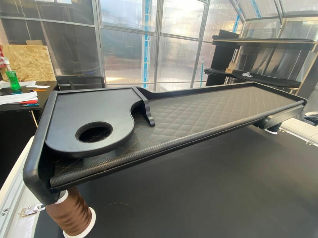 Купить Столик в грузовик для MAN TGX 2 Яруса Чёрная экокожа Серый ромб Черная труба с доставкой по всей России.