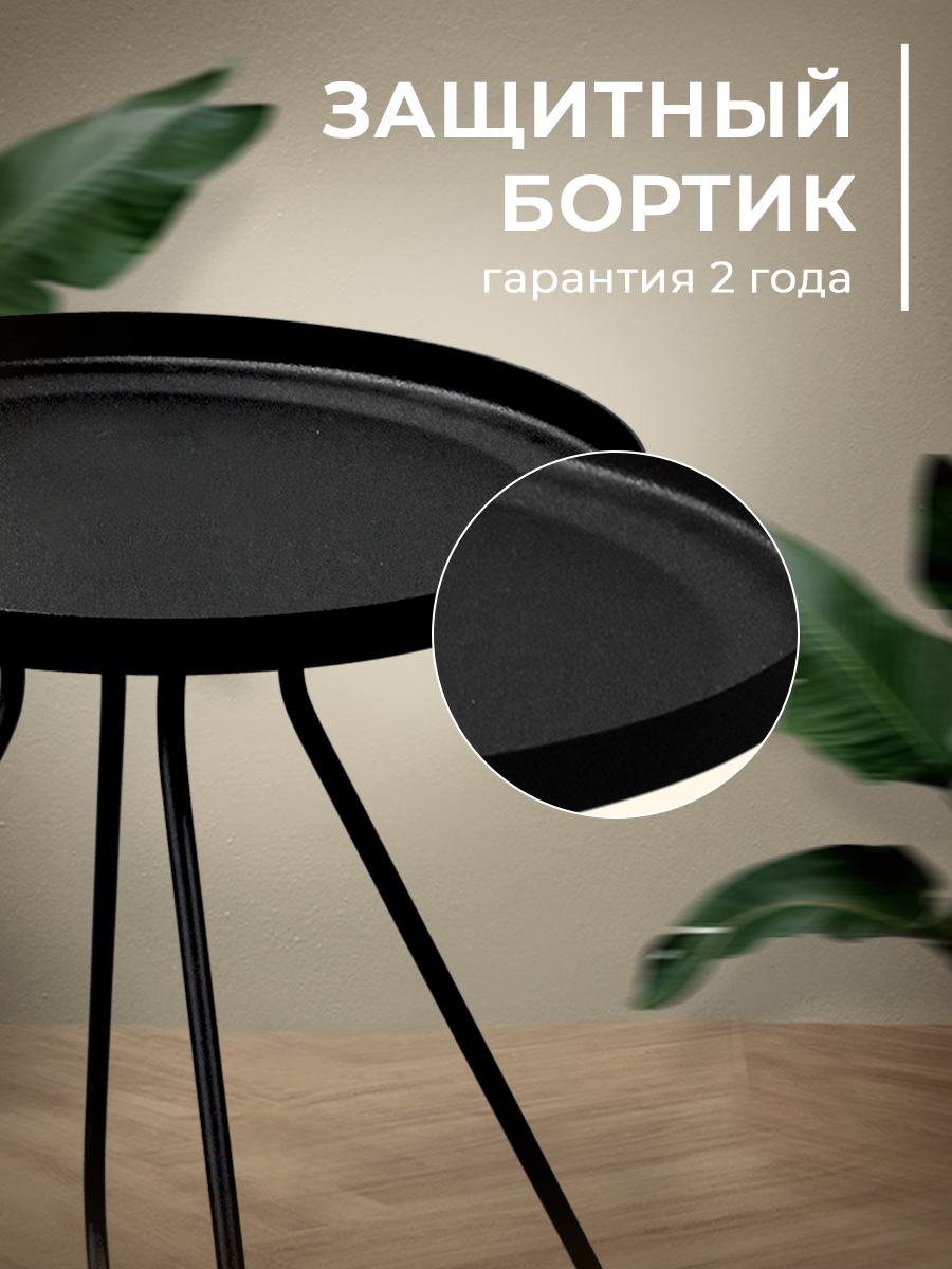 Изготовленный из металла, столик отличается прочностью и долговечностью, а его изящный дизайн отлично вписывается в интерьер как в современном стиле, так и с элементами лофта. Благодаря металлу, стол выдерживает капризы природы, сохраняя свой внешний вид.