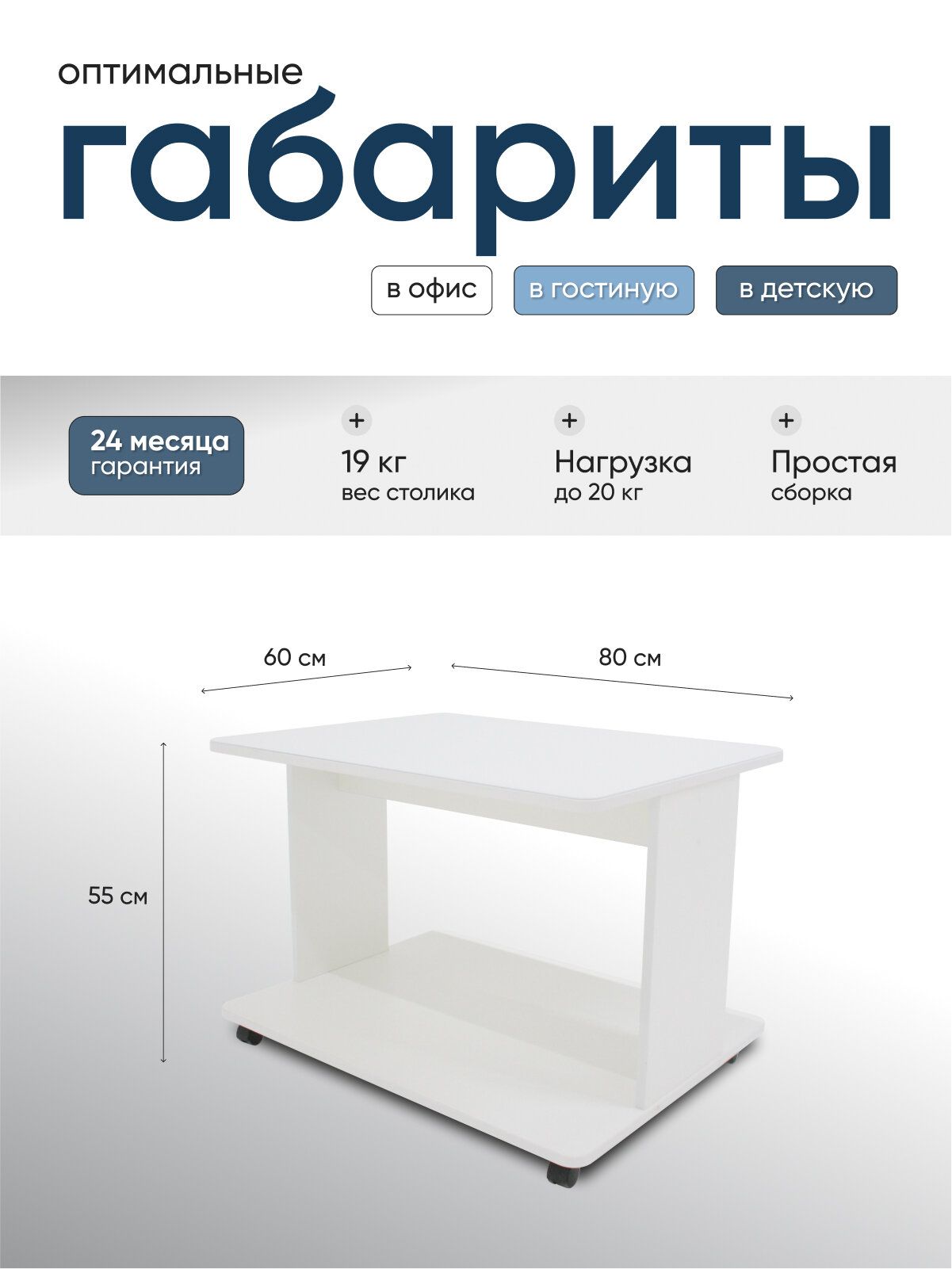 Столик журнальный «Дуэт», прямоугольный, лдсп/стекло, белый/белый, 80х60х55 см: сравнение цен, характеристики, фото, актуальное наличие и цены.