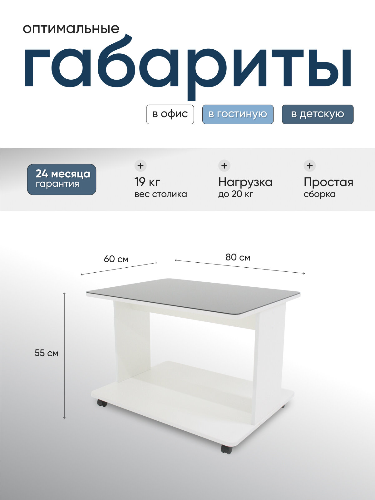 Столик журнальный «Дуэт», прямоугольный, лдсп/стекло, белый/черное, 80х60х55 см: сравнение цен, характеристики, фото, актуальное наличие и цены.