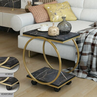 Купить Столик журнальный MebelER «лорд», на колесиках, металлический, стиль лофт, черный мрамор/золото с доставкой по всей России.