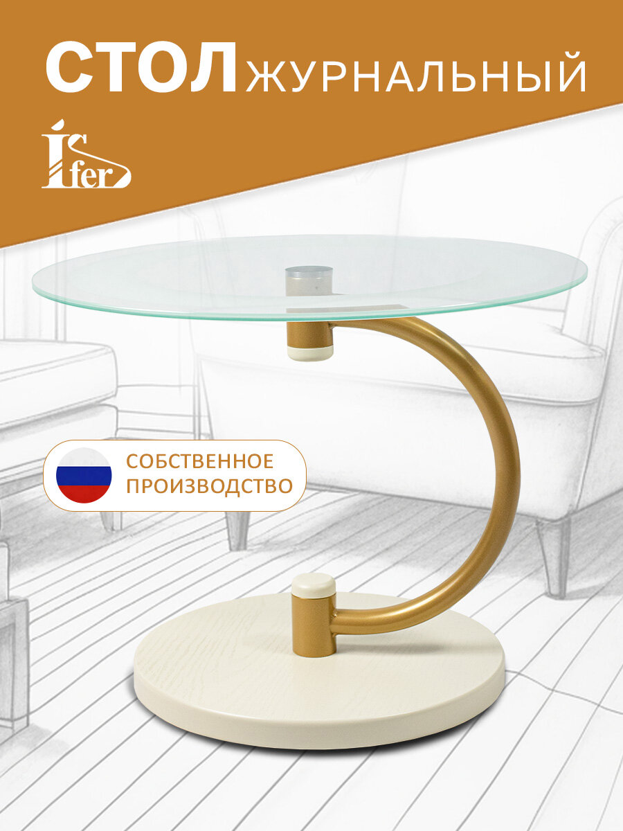Купить Стол журнальный IFERS Дуэт 13Н стекло, цвет золото/слоновая кость/прозрачное с доставкой по всей России.
